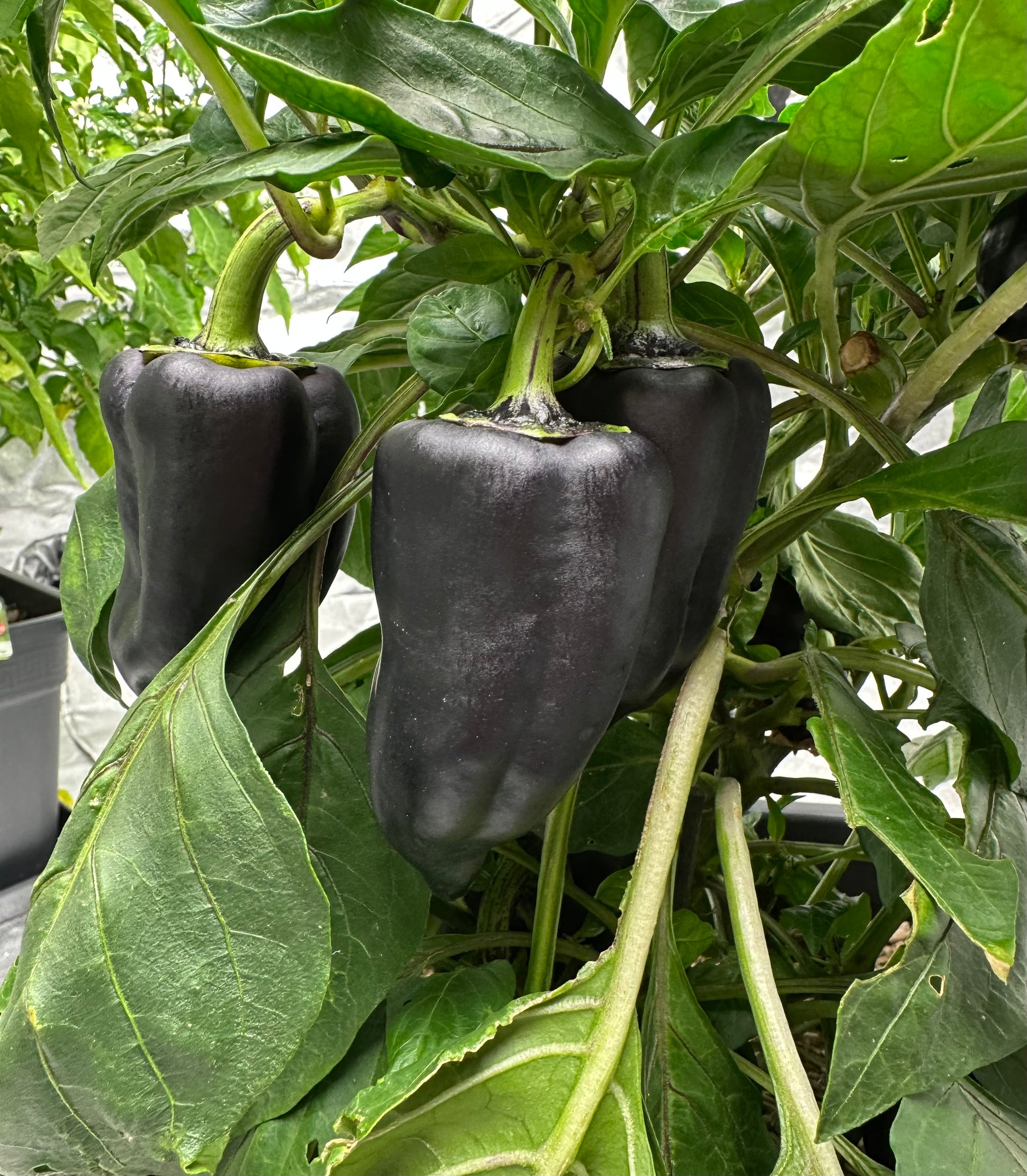 Frucht: Mittelgroße bis große Blockpaprika mit einem Gewicht von etwa 150–200 g. Die Früchte sind zunächst tief violett („purple“) und können sich bei voller Reife rot färben.